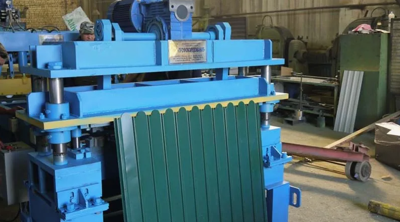 Производство фигурного профнастила начинается с поступления легированной стали в рулонах на завод. Этот процесс включает несколько этапов. В первую очередь, рулоны разворачиваются с помощью крана, после чего сталь укладывается на прокатный стол. На этом этапе задается программа, которая определяет, какой узор будет нанесен на поверхность профлиста. Специальные валики, настроенные на нужный рисунок, продавливают металл, придавая ему желаемую форму.