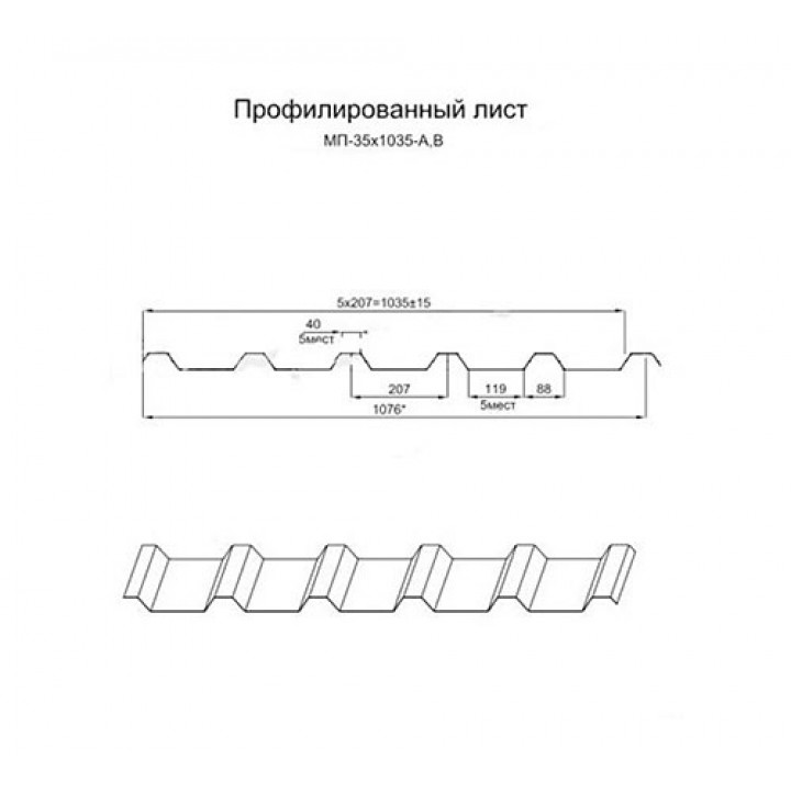 Тип профиля: МП35ПГ-1076 - это профнастил с высотой волны 35 мм, который идеально подходит для создания арочных конструкций. "ПГ" в названии означает, что профнастил имеет полимерное покрытие.